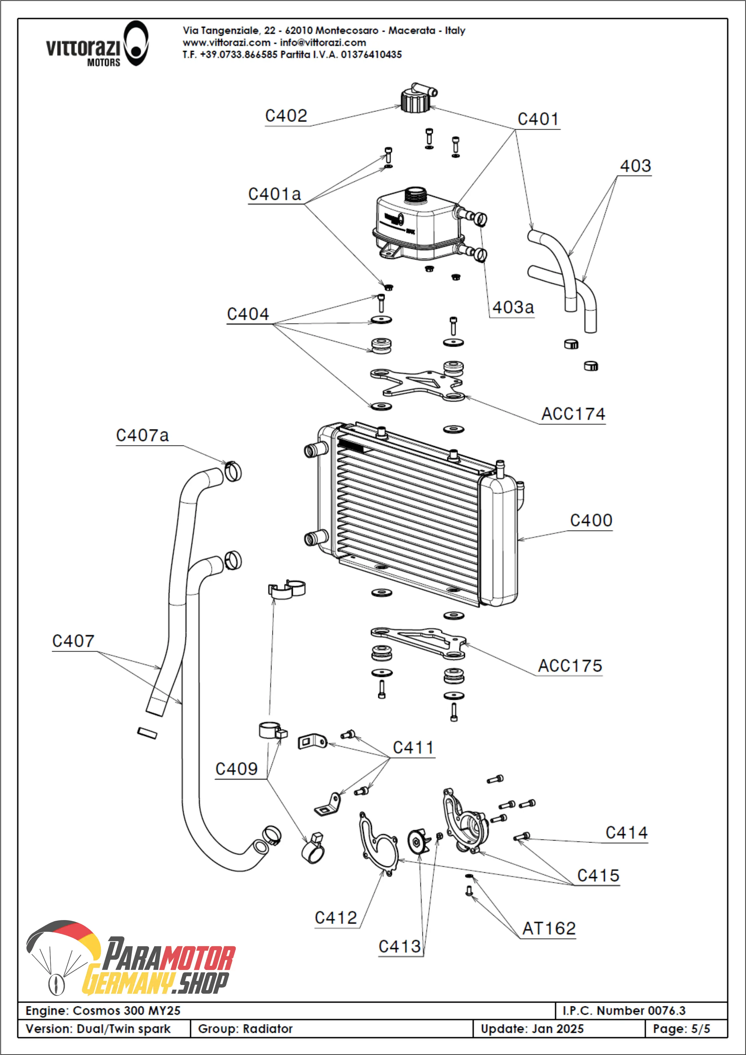 C403 Tuyaux de livraison et de retour pour réservoir d'expansion avec pinces de fixation | Vittorazi