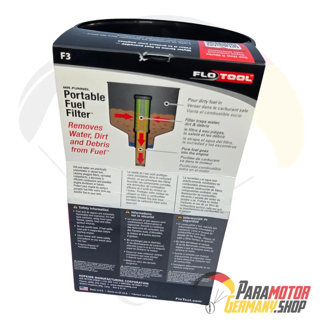 Der Mr. Funnel Kraftstofffilter ist die professionelle Lösung zum sicheren und sauberen Umfüllen von Benzin, Diesel, Heizöl und Kerosin. Er entfernt zuverlässig Schmutz, Staub und Wasser und schützt so Motoren und empfindliche Systeme vor Schäden.